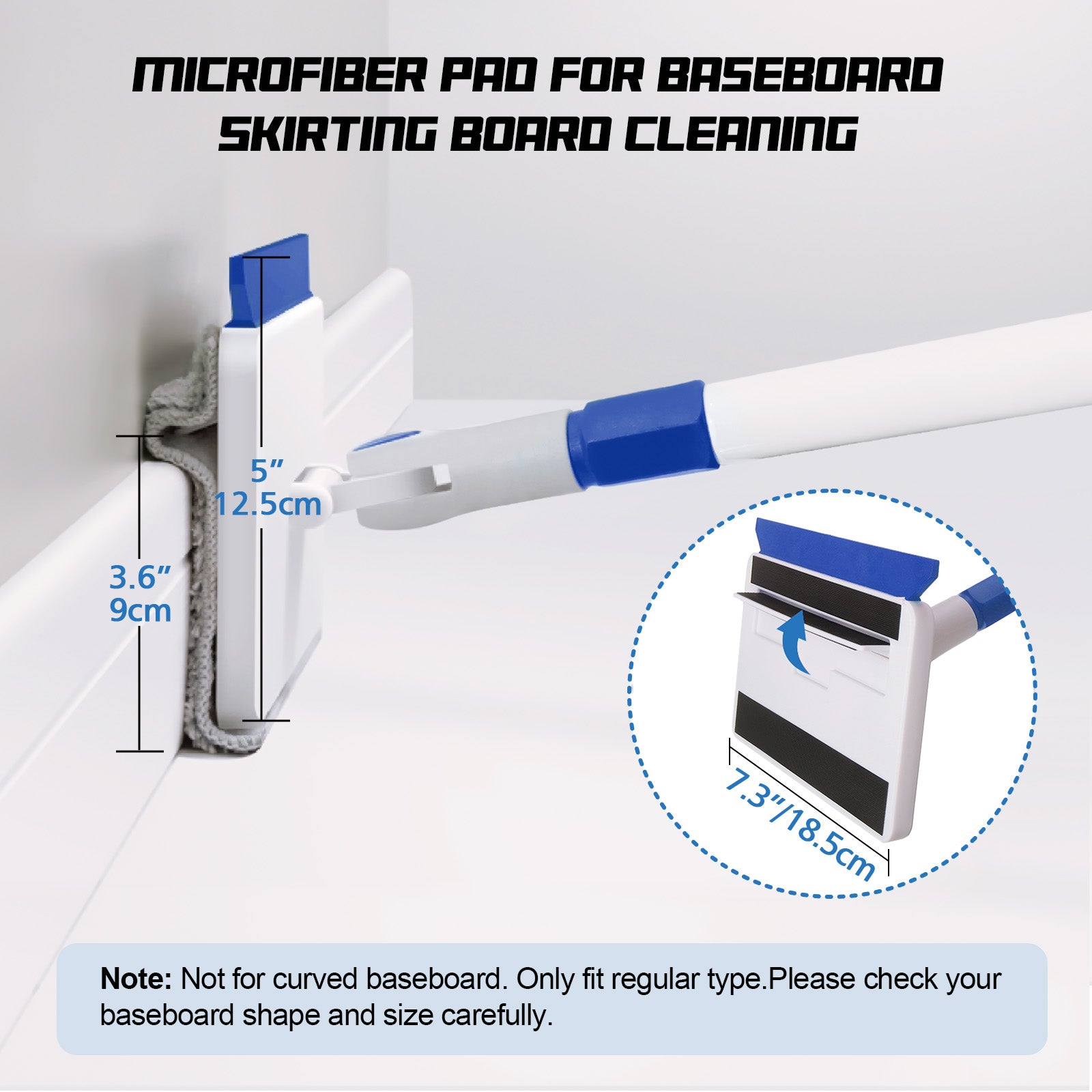 - 【Baseboard Cleaner Tool】60"/152cm long handle with unique shape follows the baseboard's contour. Protection for the back up to a 60" handle. Stooping to clean baseboard, mouldings, ceiling, windows, bathtubs, and floors won't be necessary any longer.