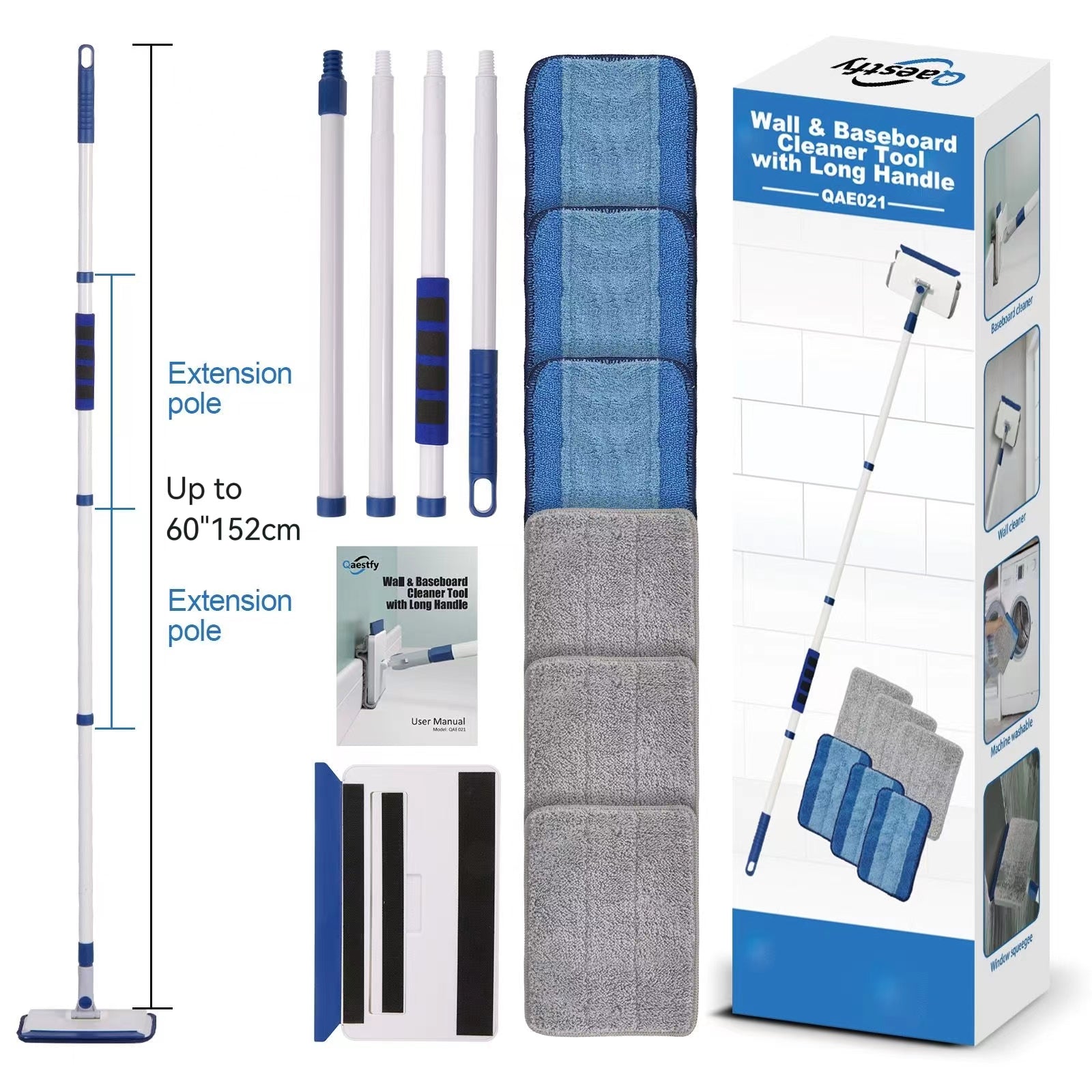 - 【Replaceable and Machine-washable】Mop pads are available. The microfiber replacement head model is designated QAE014; The blue microfiber mop pad will be availalble soon.